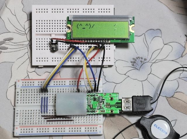 液晶表示を試してみました。(秋月の16×2行のキャラクタLCD)